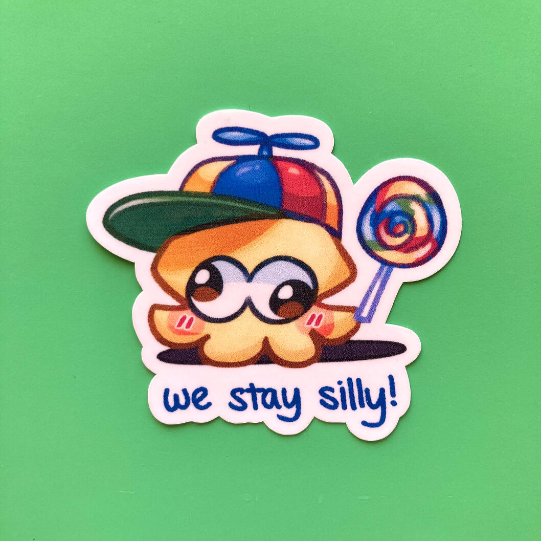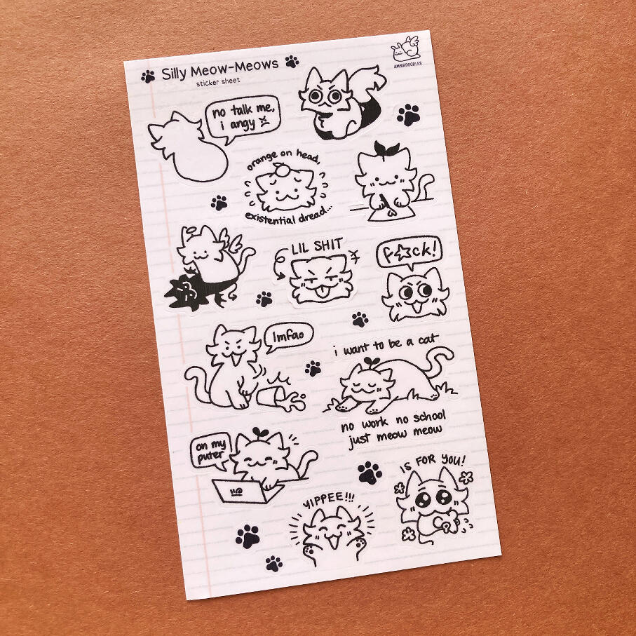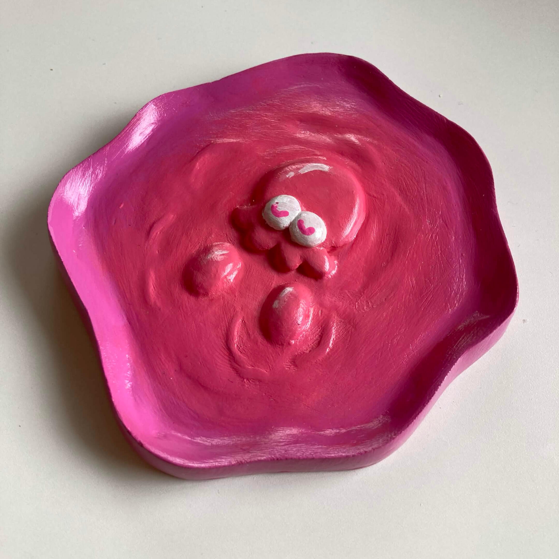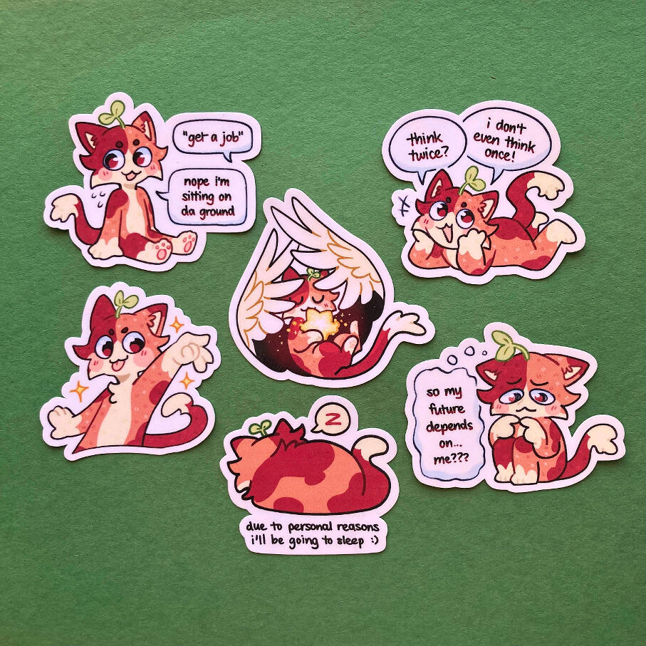 i make silly little clay pins, clay trinket dishes, stickers, sticker sheets, prints, and acrylic charms!