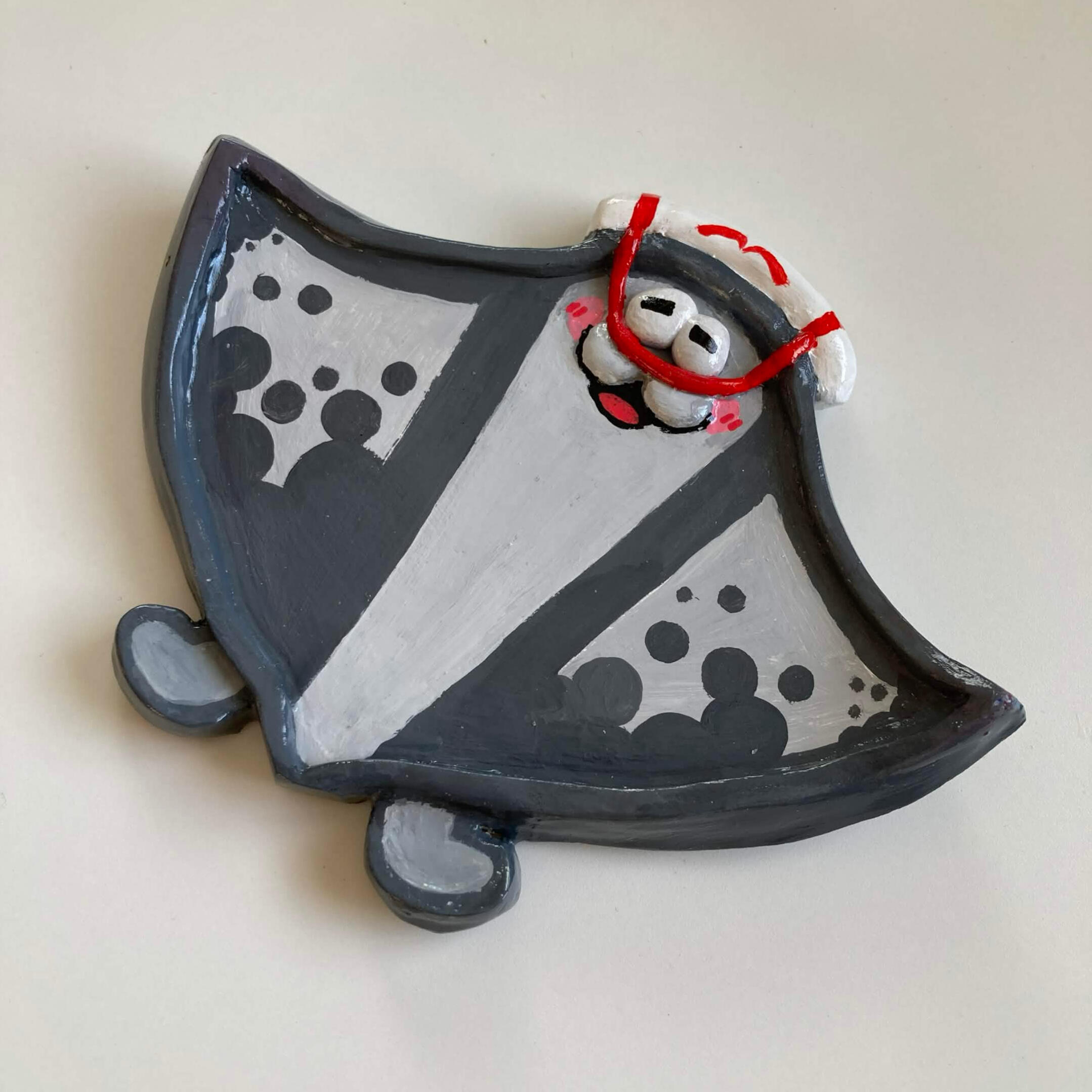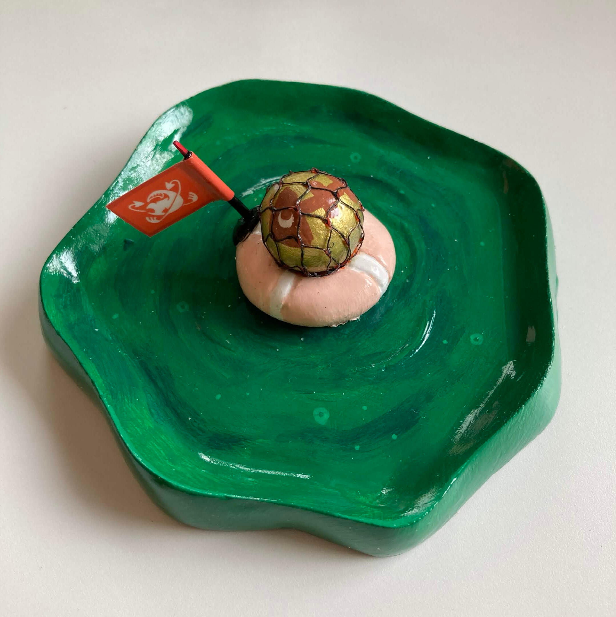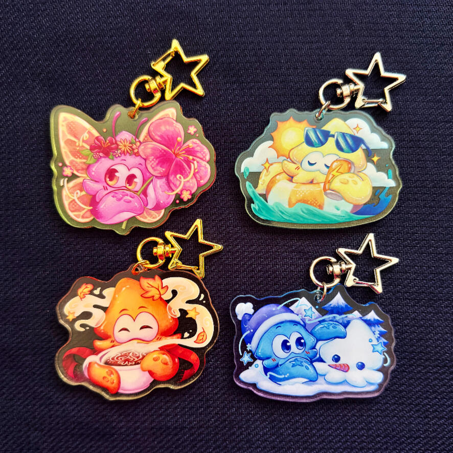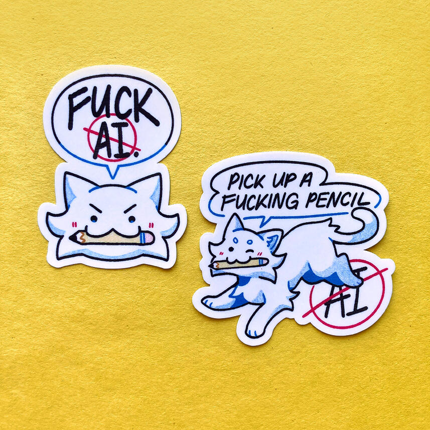 i make silly little clay pins, clay trinket dishes, stickers, sticker sheets, prints, and acrylic charms!